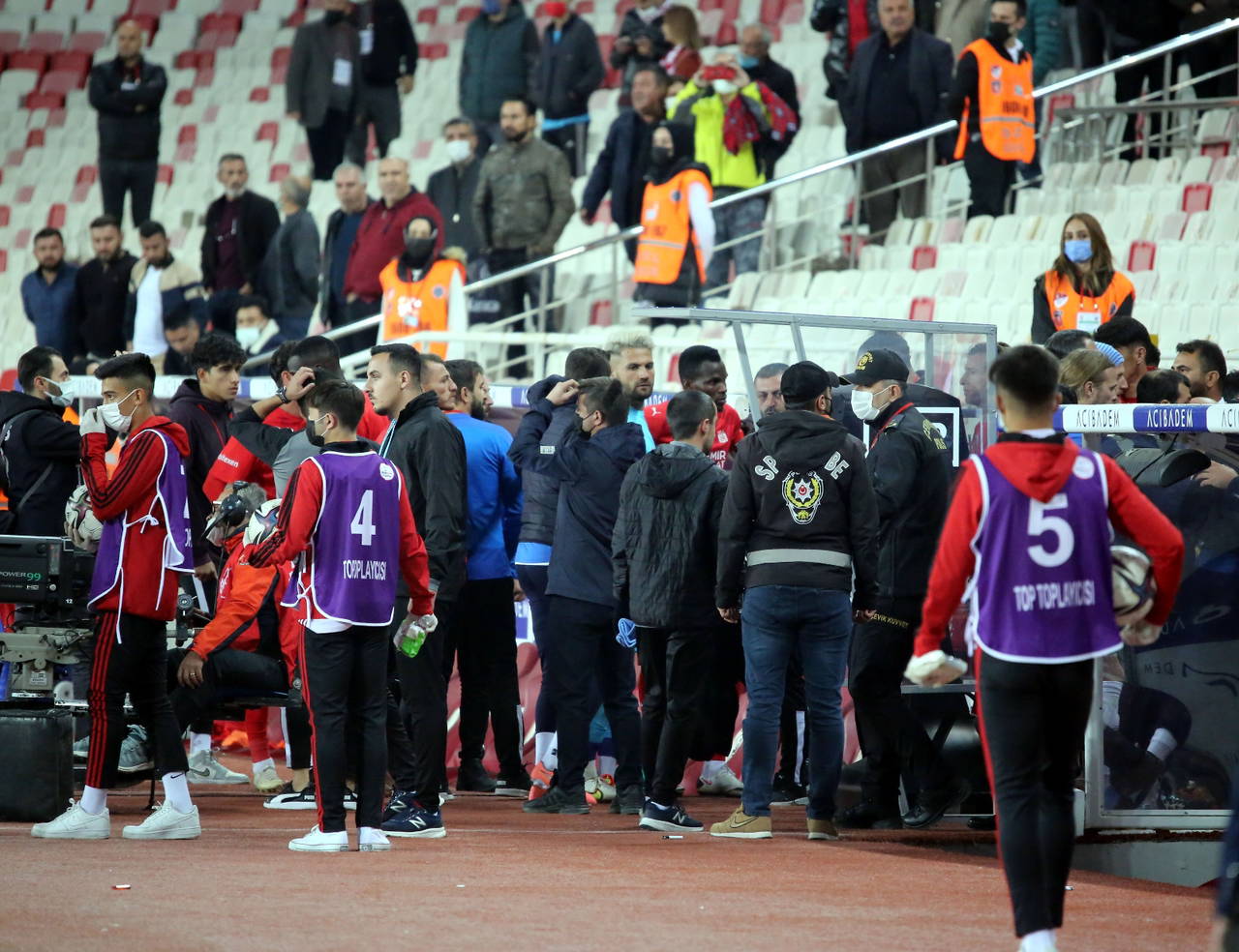 DG Sivasspor ile Adana Demirspor’un 1-1 berabere kaldığı maç sonrası Bahçeşehir Koleji Sivas 4 Eylül Stadı’nda tansiyon yükseldi. Futbolcular, teknik heyet ve tribünlerin büyük tepki gösterdiği hakem Bahattin Şimşek ile yardımcıları, sahadan polis eşliğinde çıkabildi.