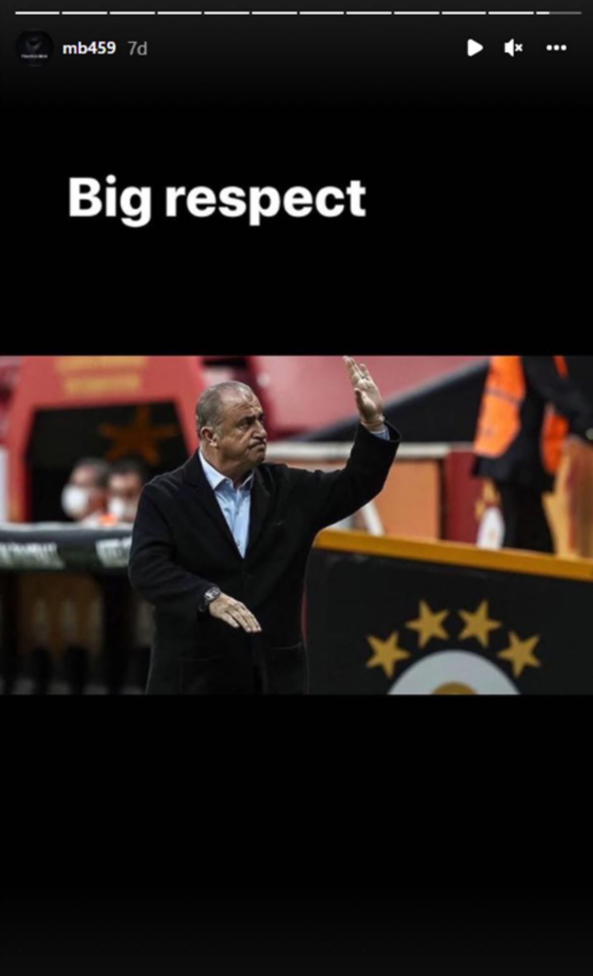31 yaşındaki futbolcu, 17. haftada Alanyaspor'u deplasmanda 3-1 yendikleri maçta da takımının ikinci golünü kaydetti. İtalyan futbolcudan bugün Fatih Terim paylaşımı geldi. Galatasaray Teknik Direktörü Fatih Terim'in, hakem Zorbay Küçük'ü hedef alan açıklamalarının ardından gelen paylaşımda Balotelli, tecrübeli teknik adamın fotoğrafını kullandı. İtalyan futbolcu fotoğrafın üzerine de "Büyük saygı" ifadelerini yazdı. Balotelli, bir süre sonra ise paylaşımını kaldırdı.