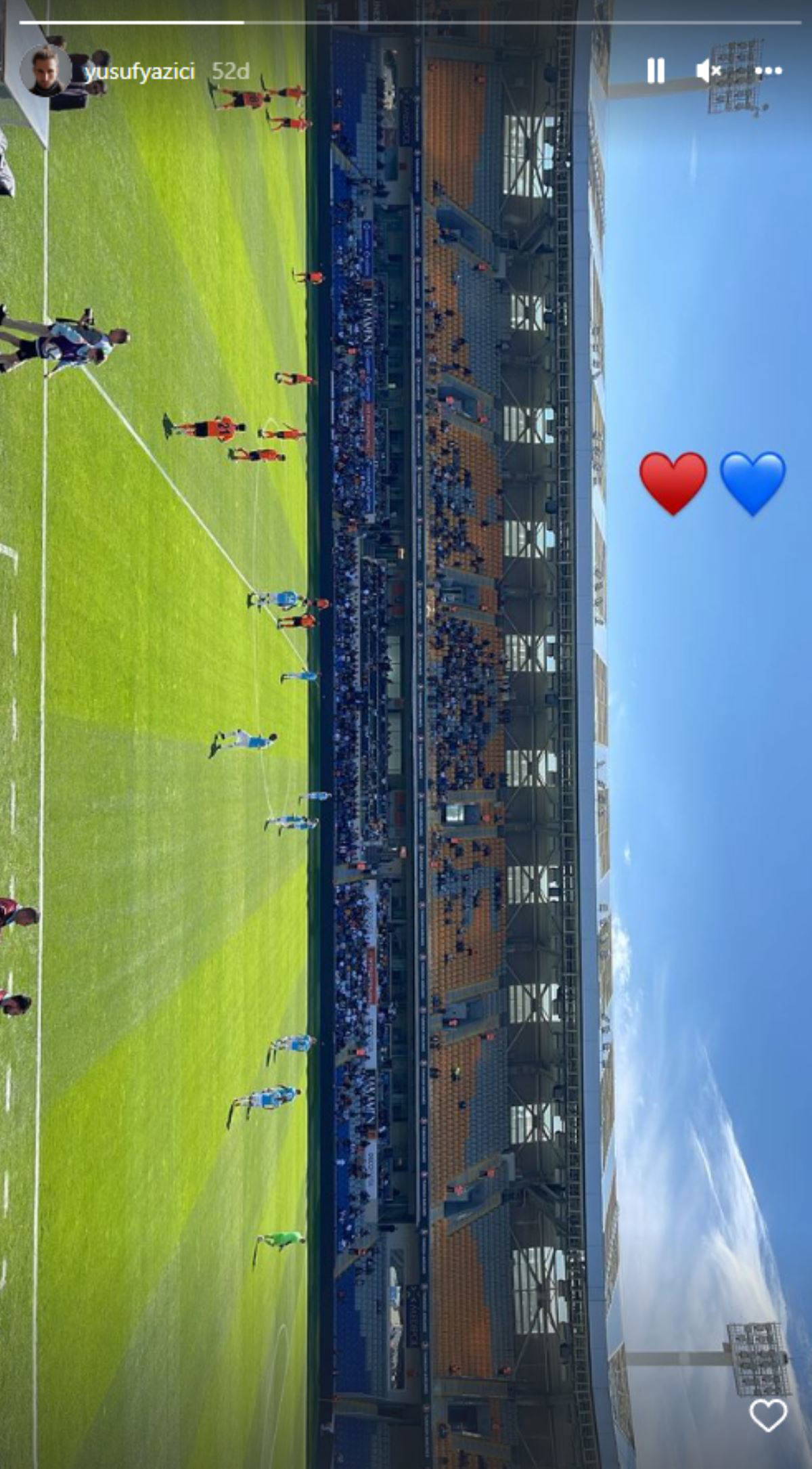 Trabzonspor'un eski futbolcusu Yusuf Yazıcı, karşılaşmayı izlemek için Başakşehir Fatih Terim Stadyumu'na geldi. Yazıcı, sosyal medya hesabından sahayı paylaşırken bordo-mavili kalp emojisini kullandı.