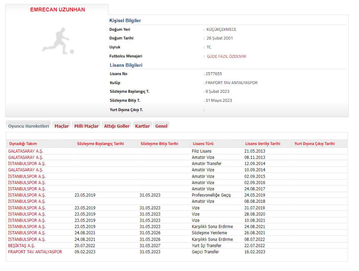 Sezon başında Beşiktaş'ın İstanbulspor'dan kadrosuna kattığı Emrecan Uzunhan, sezon sonuna kadar Antalyaspor'a kiralık olarak gitti