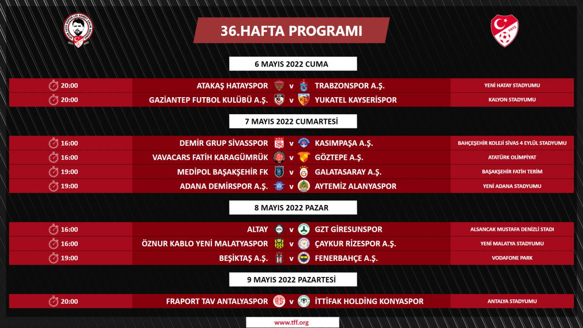 Spor Toto Süper Lig'de 36. hafta programı belli oldu.