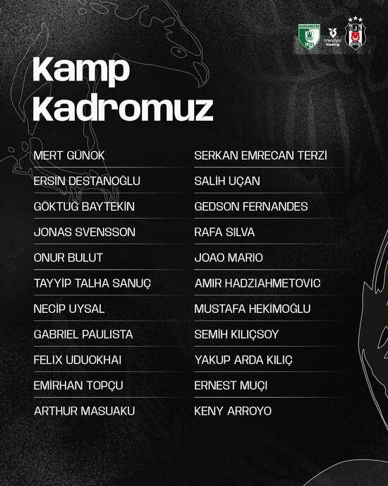 Beşiktaş'ın kamp kadrosu şöyle: