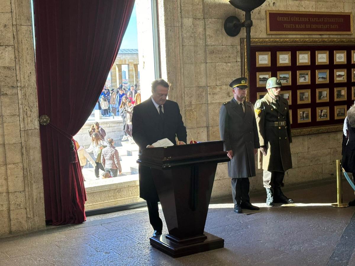 Saygı duruşu ile tamamlanan törenin ardından heyet, Misak-ı Milli Kulesi'ne geçti. Beşiktaş Başkanı Arat, Anıtkabir Özel Defteri'ni imzalayarak, şunları yazdı: