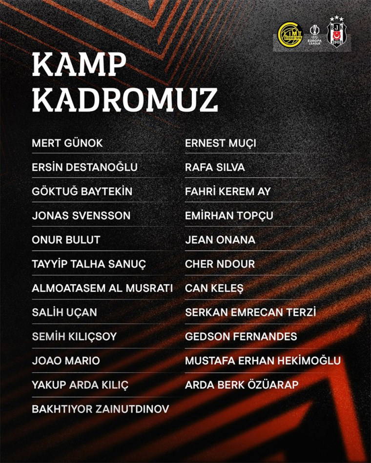 Beşiktaş, UEFA Avrupa Ligi'nde yarın konuk olacağı Bodo Glimt maçı kadrosunu açıkladı.