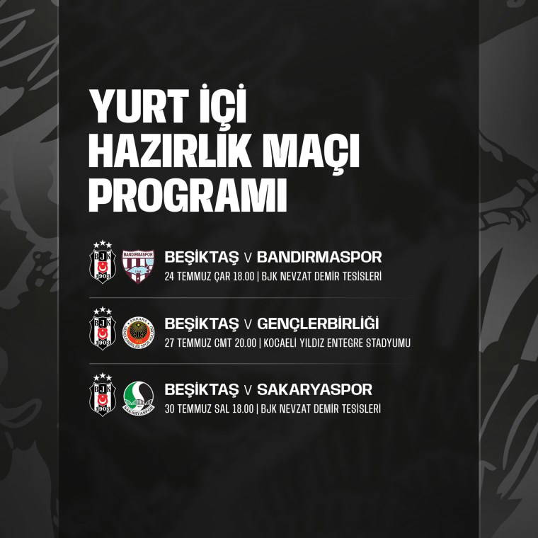Siyah-beyazlılar, yurt içinde 3 hazırlık maçı oynayacak. Beşiktaş; Bandırmaspor, Gençlerbirliği ve Sakaryaspor ile karşı karşıya gelecek.