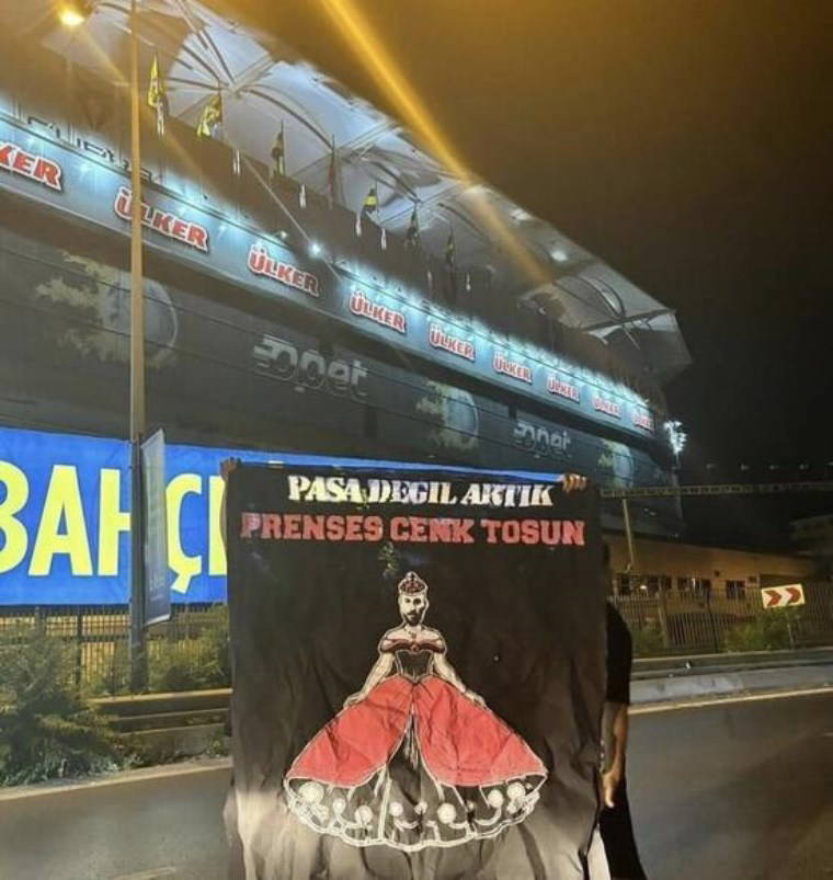 Bir grup Beşiktaş taraftarı, Kadıköy Şükrü Saraçoğlu Stadı'nın önünde 'Prenses Cenk Tosun' yazılı bir pankart açtı.