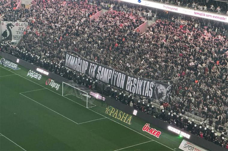Öte yandan kale arkasında da "Namağlup tek şampiyon Beşiktaş" pankartı açıldığı görüldü.