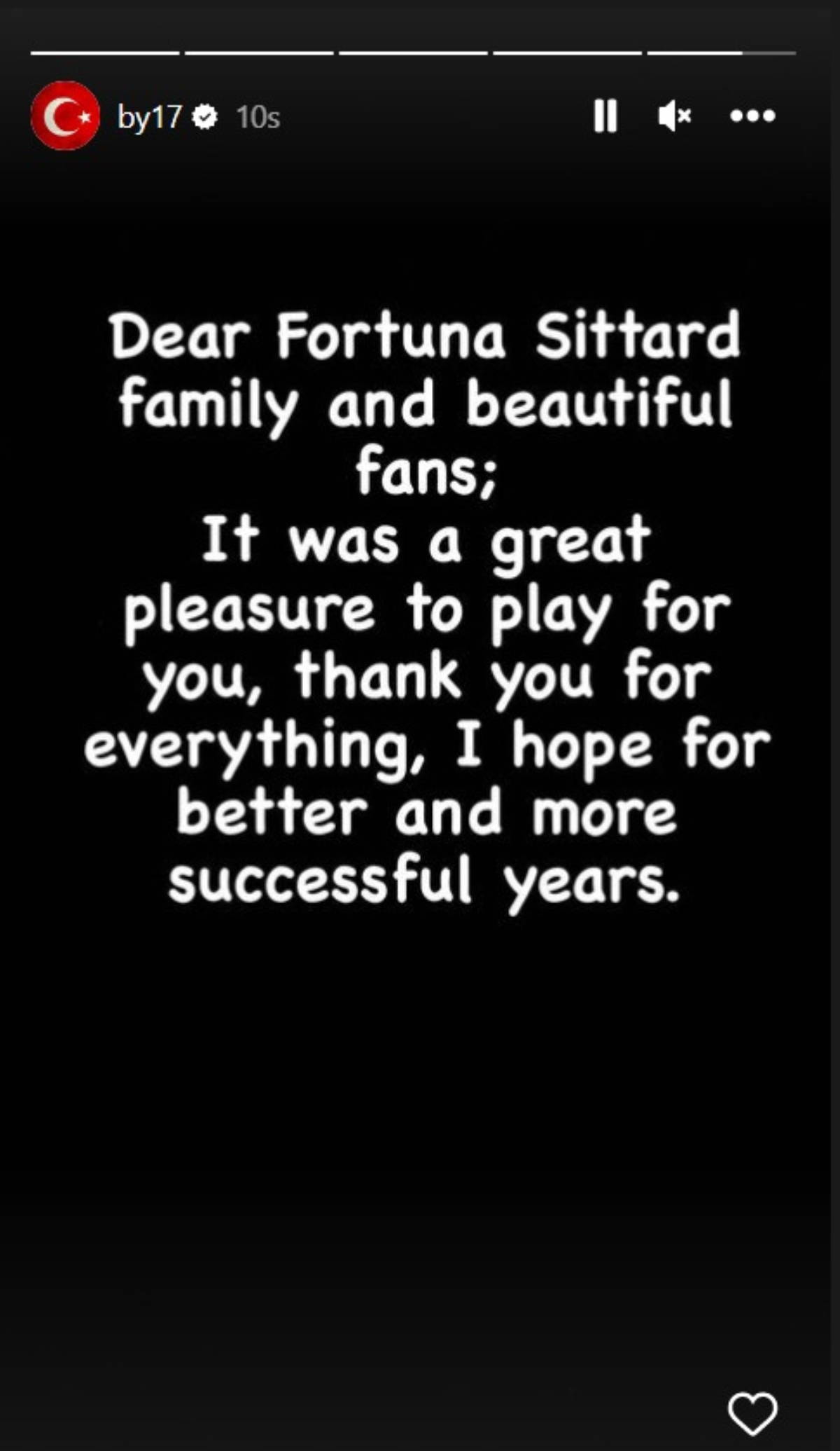Tecrübeli forvet yayımladığı mesajda, "Sevgili Fortuna Sittard ailesi ve harika taraftarları. Sizin için oynamak büyük bir onurdu. Her şey için teşekkür ederim. Daha iyi ve başarılı yıllar dilerim." ifadelerini kullandı.