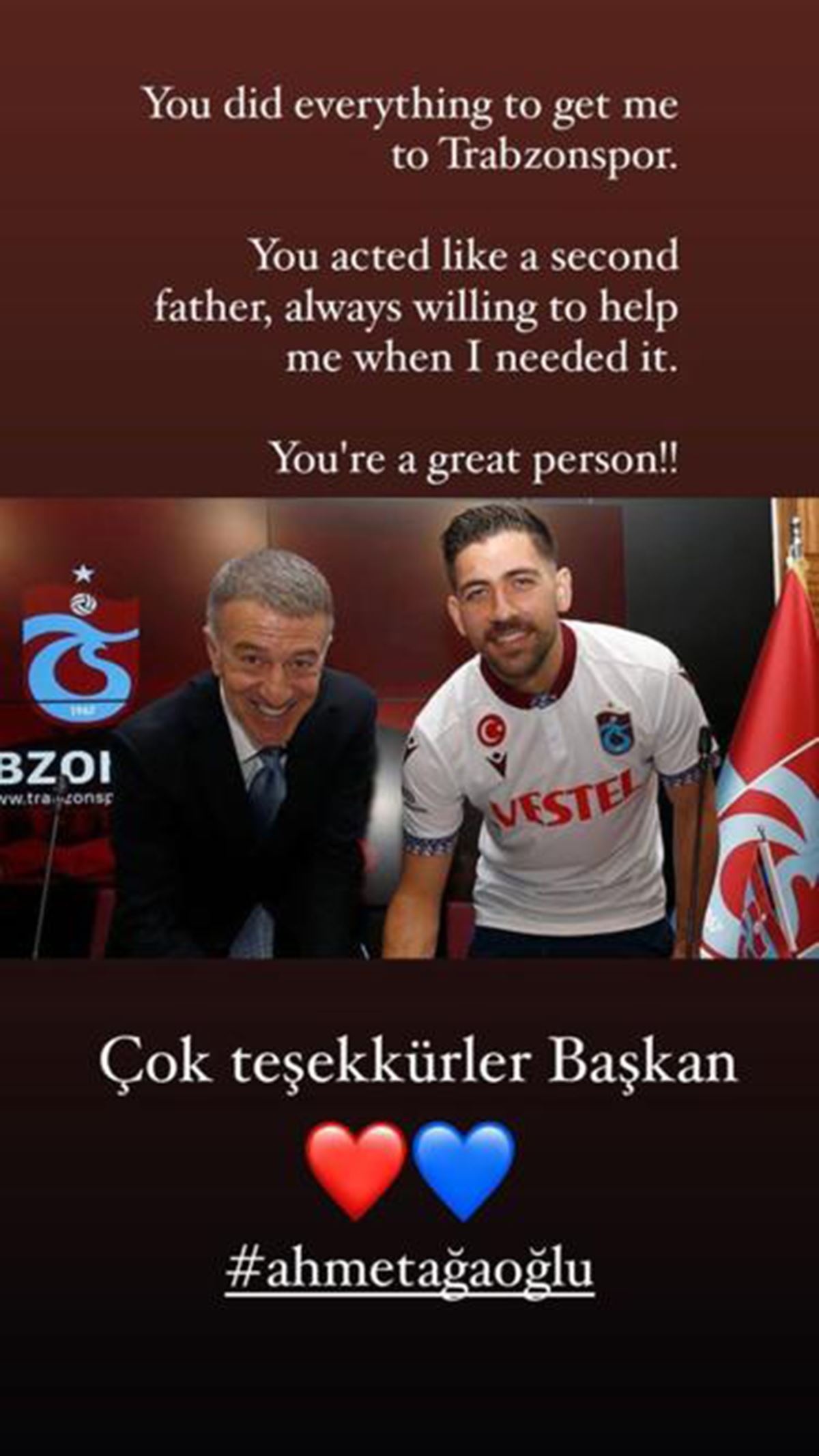 Yunan oyuncu Anastasios Bakasetas, sosyal medya hesabında, “Beni Trabzonspor’a götürmek için her şeyi yaptın. İkinci bir baba gibiydin, ihtiyacım olduğunda bana her zaman yardım etmeye istekliydin. Sen harika bir insansın. Çok teşekkürler başkan” sözleriyle Ağaoğlu’na veda etti.