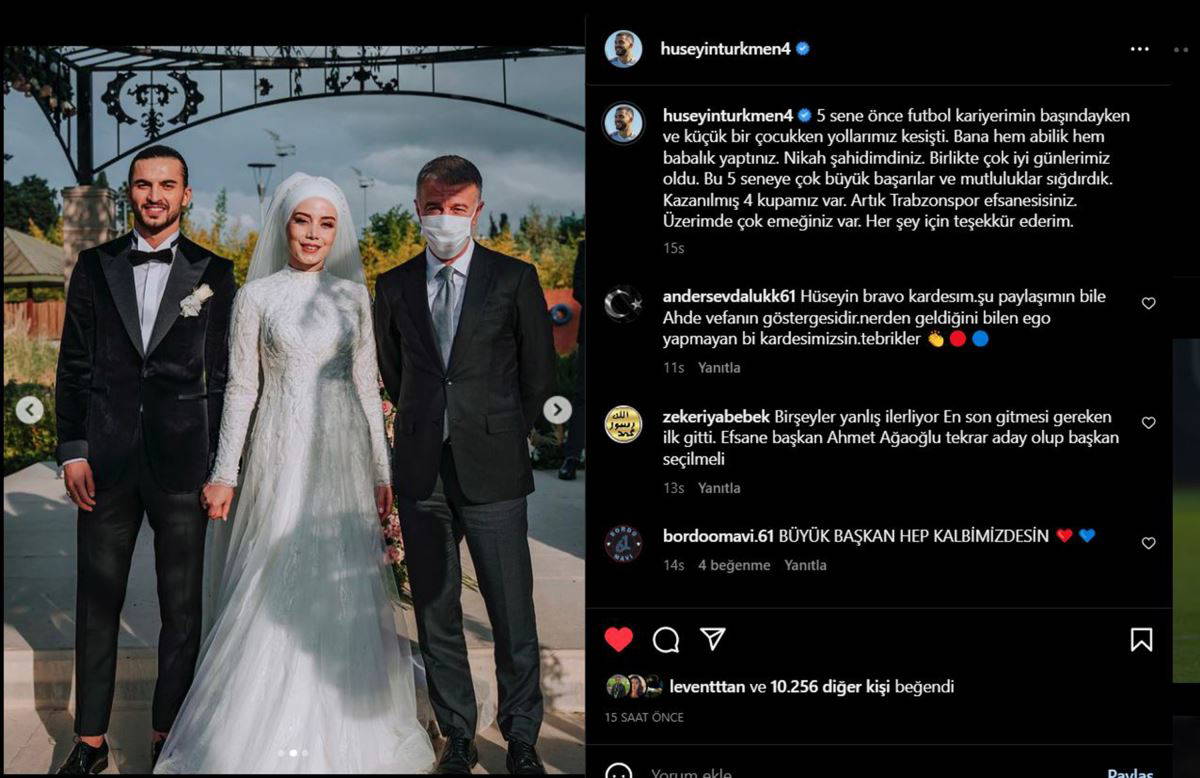 Ağaoğlu'na bordo mavili futbolcu Hüseyin Türkmen de, duygu dolu sözlerle veda etti. Türkmen, sosyal medya hesabından, “5 sene önce futbol kariyerimin başındayken ve küçük bir çocukken yollarımız kesişti. Bana hem ağabeylik, hem babalık yaptınız. Nikah şahidimdiniz. Birlikte çok iyi günlerimiz oldu. Bu 5 seneye çok büyük başarılar ve mutluluklar sığdırdık. Kazanılmış 4 kupamız var. Artık Trabzonspor efsanesisiniz. Üzerimde çok emeğiniz var. Her şey için teşekkür ederim” notunu paylaştı.