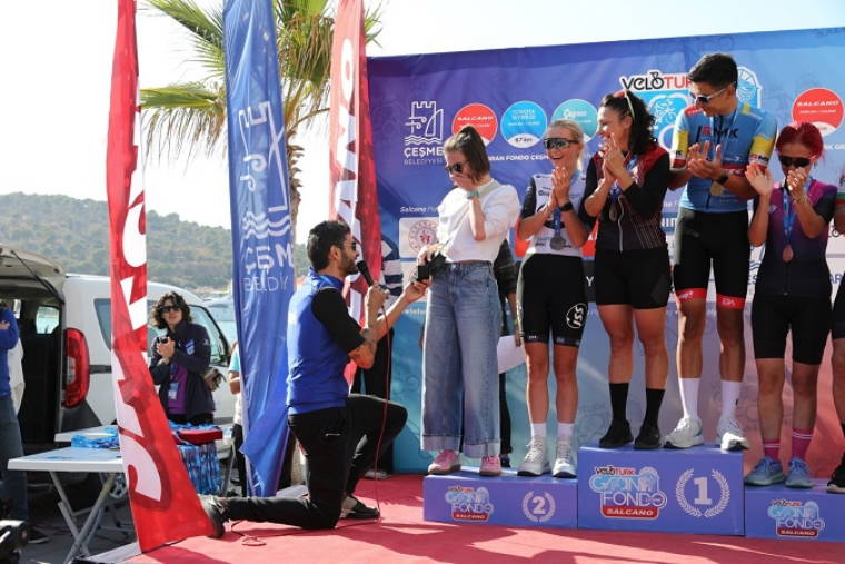 Veloturk Gran Fondo Çeşme by Salcano’da dereceye giren sporculara ödülleri Cumhuriyet Meydanı’nda düzenlenen törenle takdim edildi. Ödül törenine; Çeşme Kaymakamı Mehmet Maraşlı, Çeşme Belediye Başkanı Lal Denizli, Çeşme Belediye Başkan Vekili Banu Ayhan, Çeşme Gençlik ve Spor İlçe Müdürü Nuri Büyükateş, Argeus Travel & Event Kurucu Ortağı Aydın Ayhan Güney, Türkiye Bisiklet Federasyonu Başkanı Emin Müftüoğlu, Türkiye Bisiklet Federasyonu As Başkanı Metin Cengiz, Türkiye Bisiklet Federasyonu As Başkanı Fikret Hayali, Salcano Yönetim Kurulu Üyesi Yusuf Akgül dereceye giren sporculara ödüllerini verdi.