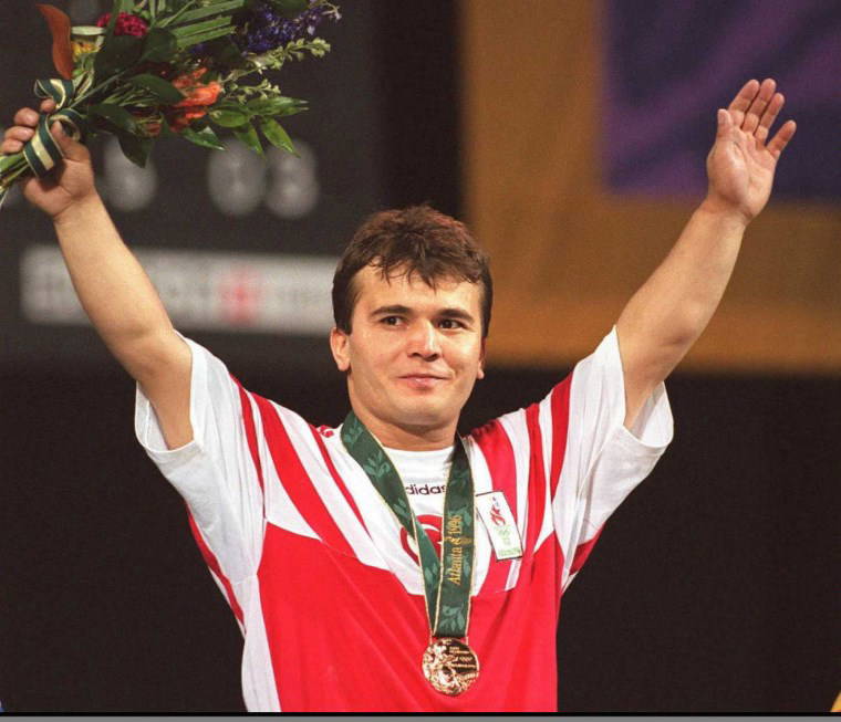 Milli halterci, 1988 Seul, 1992 Barselona ve 1996 Atlanta Olimpiyat Oyunları'nda birinci olarak, üst üste 3 olimpiyat altın madalyasıyla podyuma çıktı. Naim Süleymanoğlu, kariyerinde ayrıca 7'şer kez dünya ve Avrupa şampiyonluğuna ulaşırken, 46 dünya rekoruna imza attı.