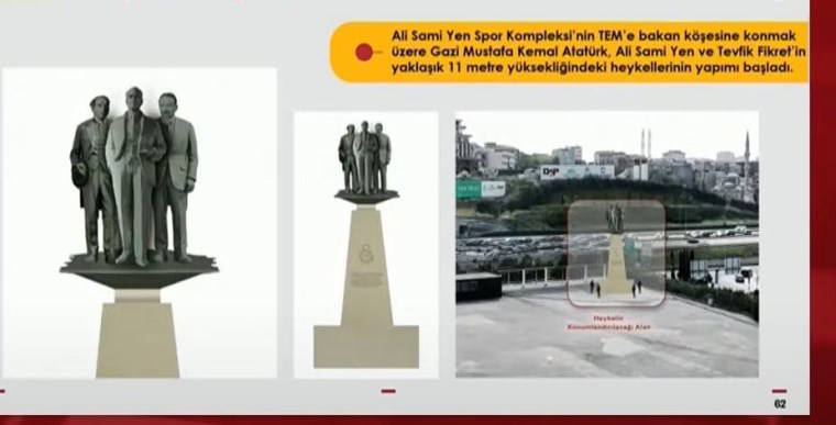 "Ali Sami Yen Spor Kompleksi'nin TEM'e bakan köşesine konmak üzere Gazi Mustafa Kemal Atatürk, Ali Sami Yen ve Tevfik Fikret'in yaklaşık 11 metre yüksekliğindeki heykellerinin yapımına başladık. Bu heykel o bölgeden geçen her Galatasaraylı için gurur vesilesi olacak."