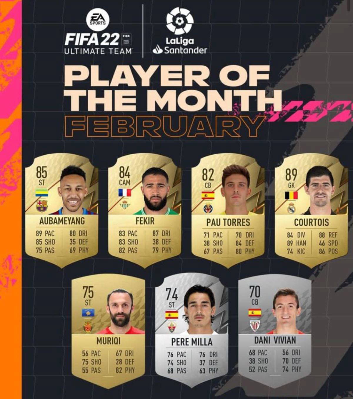 Oylamada yer alan hücum oyunlarından Mallorca forması giyen Vedat Muriç, 4 maçta 2 gol 1 asist, Barselona forması giyen Pierre-Emerick Aubameyang 4 maç 4 gol, Real Betis forması giyen Nabil Fekir 4 maçta 1 gol ve Elche forması giyen Pere Milla ise 4 maçta 2 gol 1 asistlik performans gösterdi.