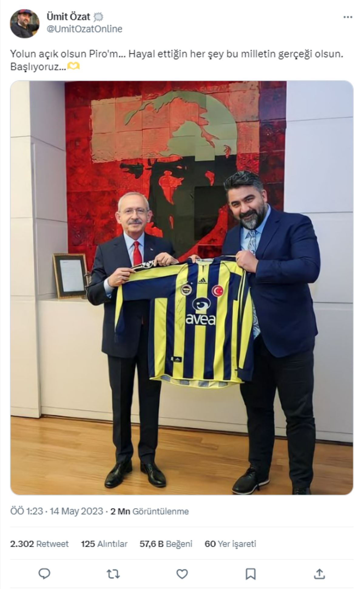 Kariyerinde uzun dönemler Fenerbahçe forması giyen Ümit Özat, Millet İttifakı Cumhurbaşkanı Adayı Kemal Kılıçdaroğlu'nu desteklediğini duyurdu.