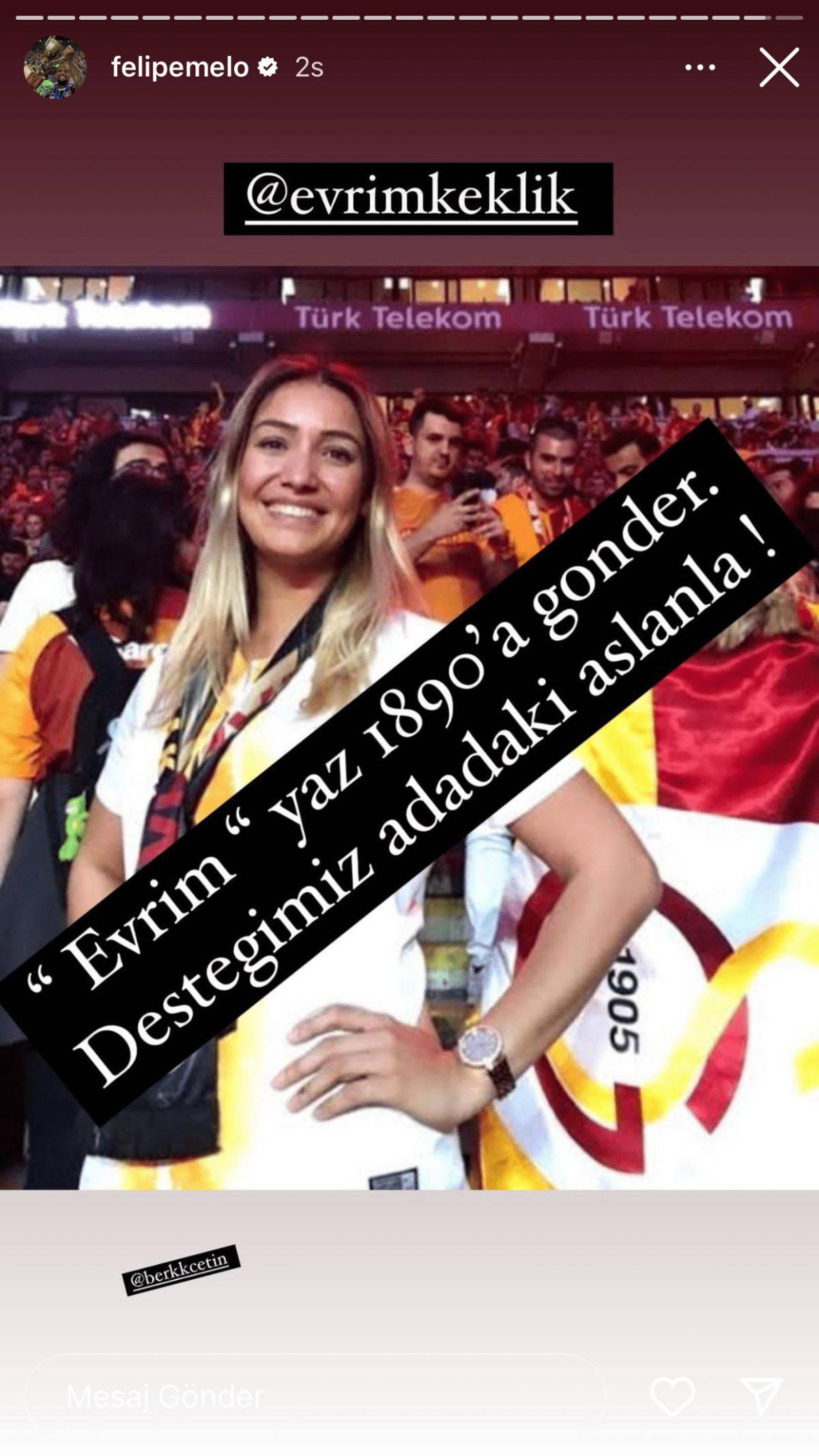 Bu desteğe katılanlara eski Galatasaraylı Felipe Melo da eklendi. Melo, Instagram hesabından yaptığı paylaşımla Evrim Keklik'e destek oldu.
