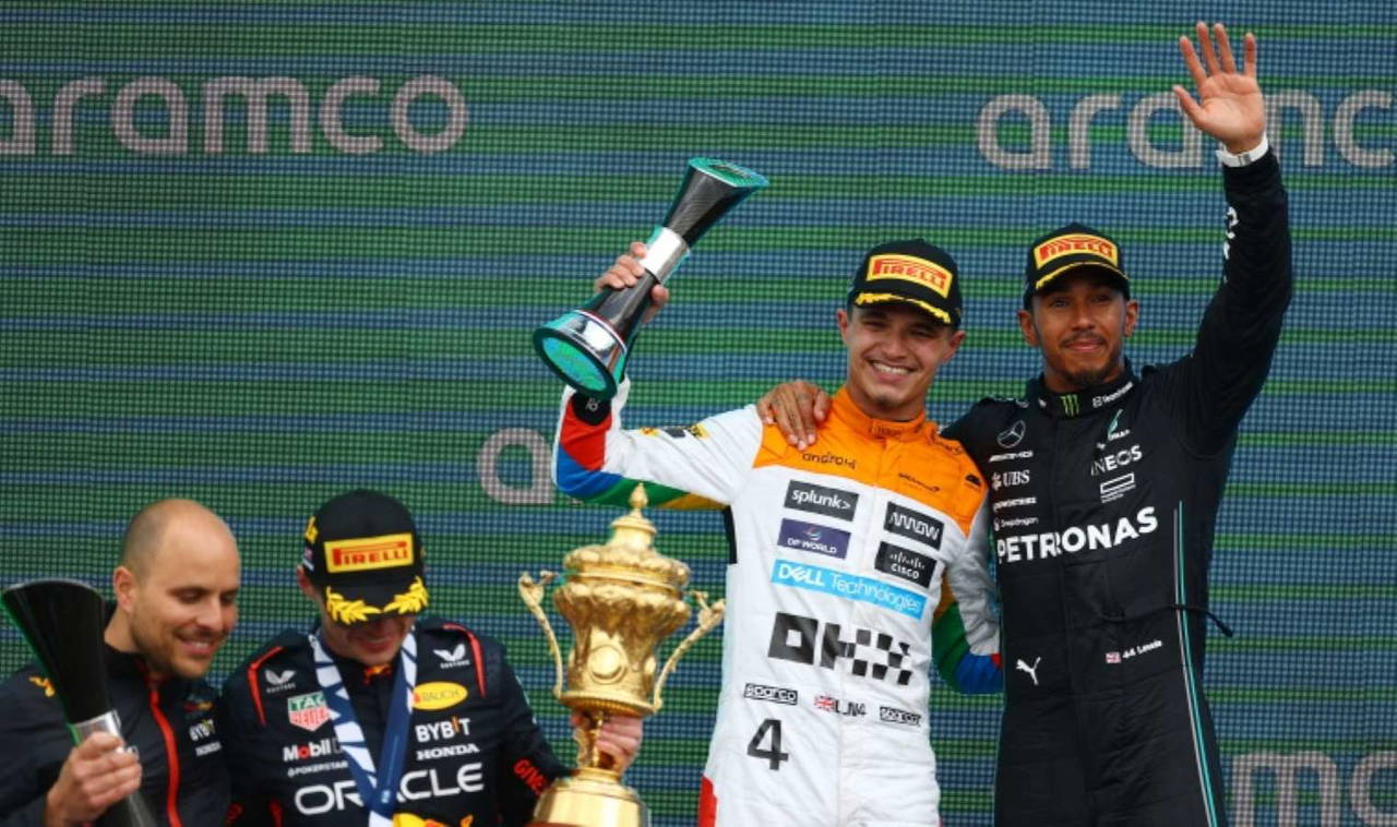 Lando Norris (ortada) ile Lewis Hamilton (sağda)