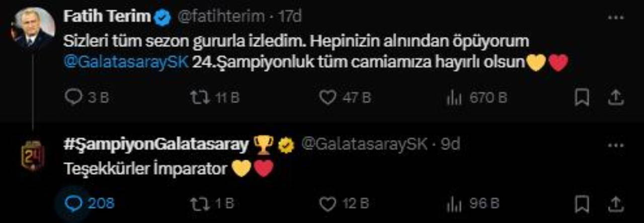 Galatasaray ise resmi hesabından "Teşekkürler İmparator" diye cevap verdi.