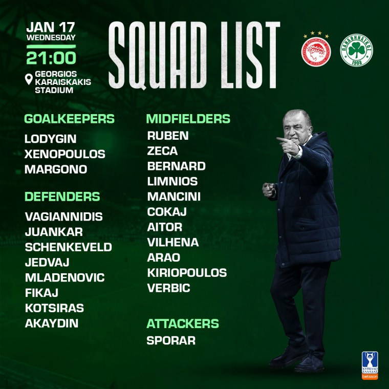 Panathinaikos'un kamp kadrosu şu şekilde: