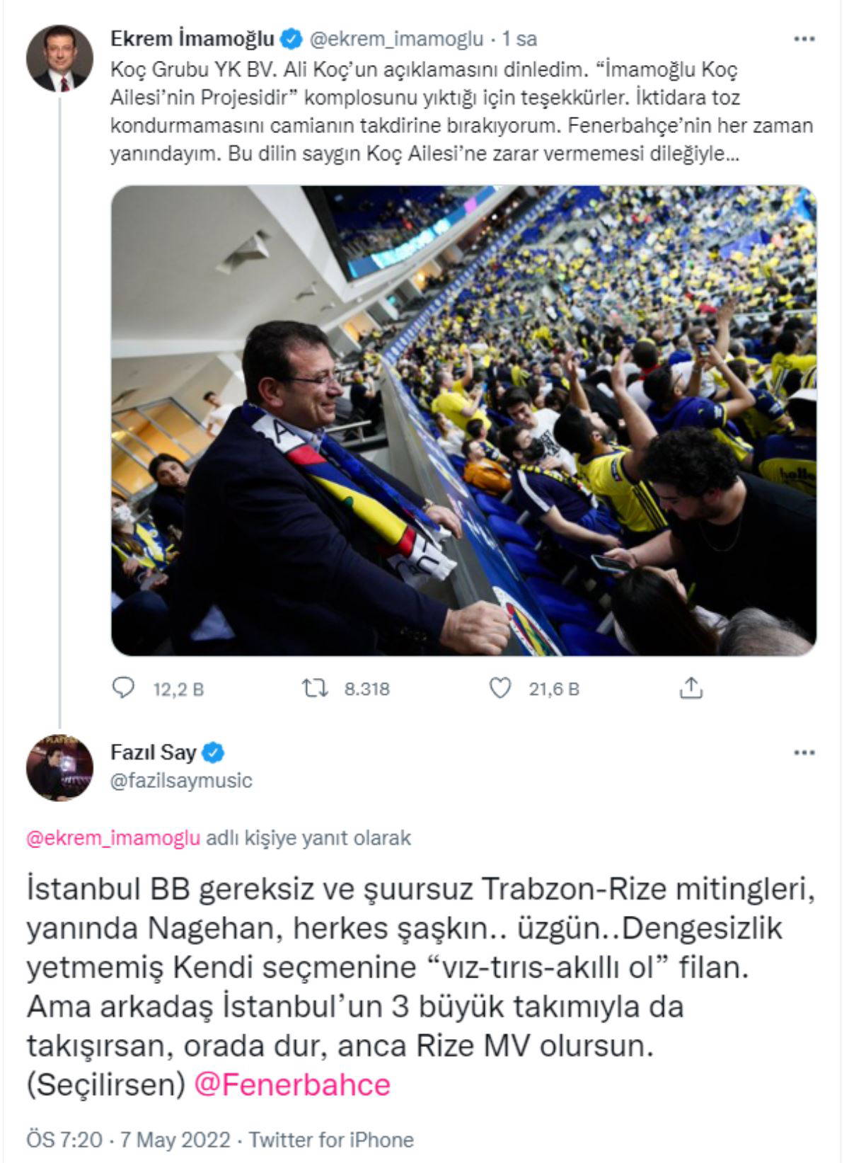 Fenerbahçe taraftarlığıyla bilinen ünlü piyanist Fazıl Say, İmamoğlu'nun bu paylaşımına sosyal medya aracılığıyla yanıt verdi.