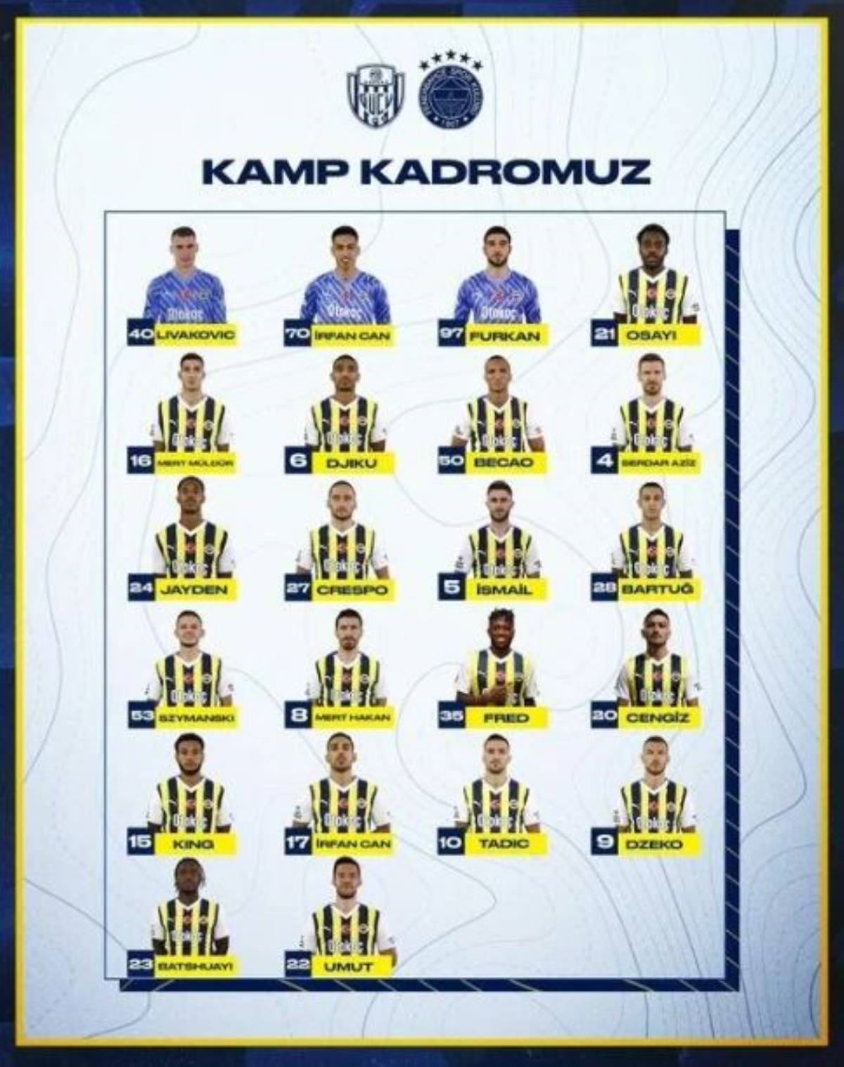 Kulüpten yapılan açıklamada yeni transfer Dominik Livakovic'in kadroda yer aldığı belirtilirken, Luan Peres, Samet Akaydin, Omar Fayed, Ferdi Kadıoğlu, Nazım Sangare, Miha Zajc, Ryan Kent, Emre Mor kadroda yer almadı.