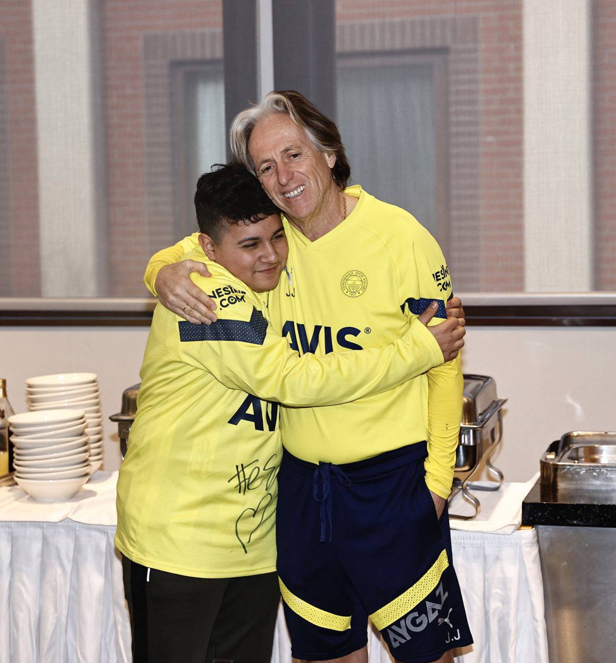 Teknik direktör Jorge Jesus ve futbolcularla bir araya gelen Mehmet Akif, Fenerbahçeli futbolcularla fotoğraf çektirip formasını da imzalattı.