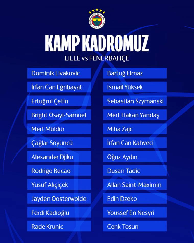 UEFA Şampiyonlar Ligi 3. eleme turunda Lille ile karşılaşacak Fenerbahçe, kamp kadrosunu açıkladı.