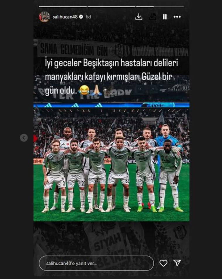 Salih Uçan paylaşımında, "İyi geceler Beşiktaş'ın hastaları, delileri, manyakları, kafayı kırmışları. Güzel bir gün oldu" ifadelerini kullandı.