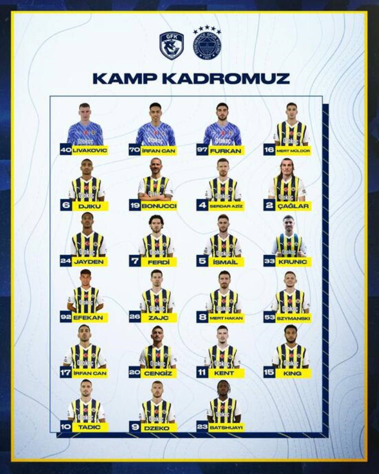 Fenerbahçe, Ziraat Türkiye Kupası'nda Gaziantep FK ile oynayacağı maçın kamp kadrosunu açıkladı.