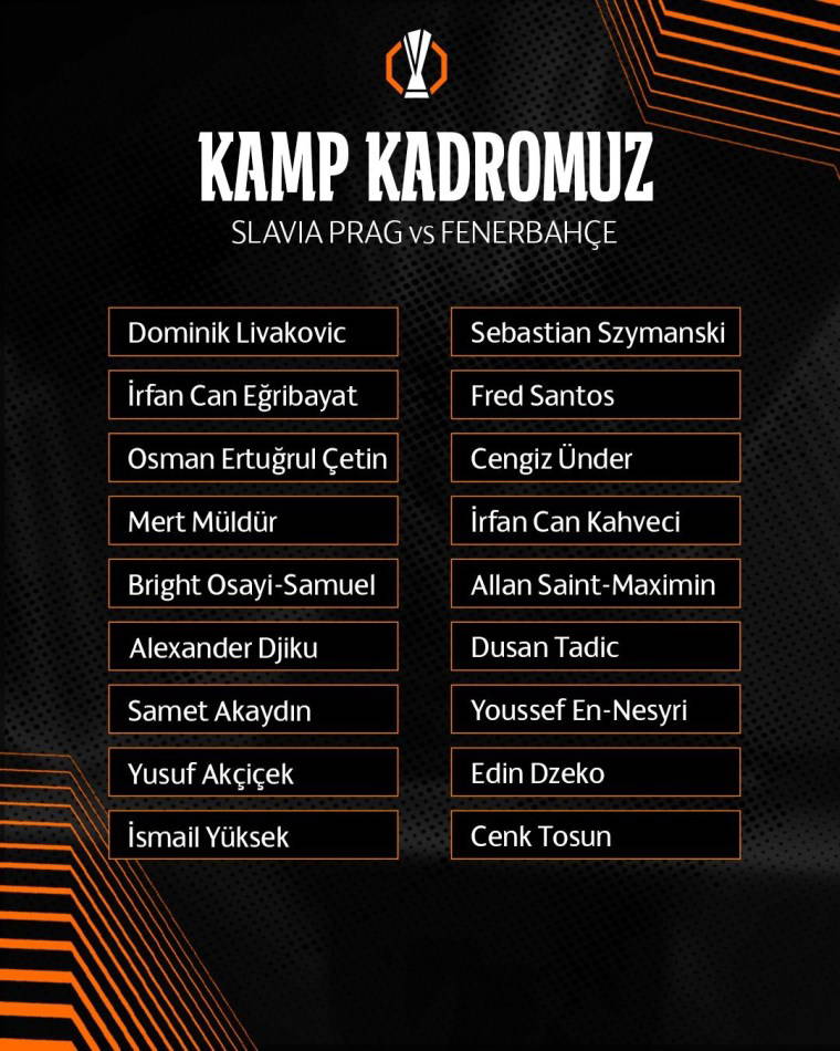 Fenerbahçe'nin deplasmanda oynayacağı Slavia Prag maçının kamp kadrosu duyuruldu.