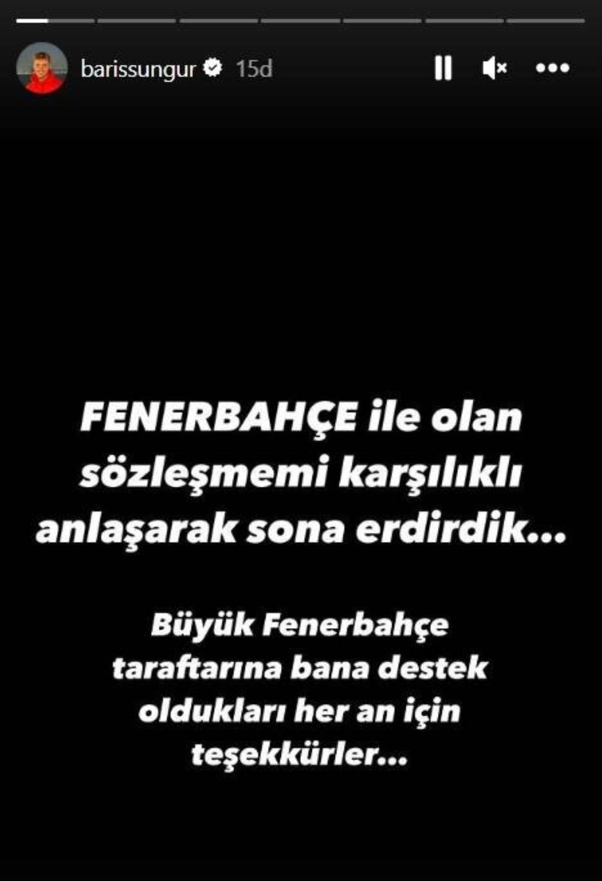 Fenerbahçe'nin 2020 yılında kadrosuna kattığı Barış Sungur, kulüpten ayrıldığını açıkladı.