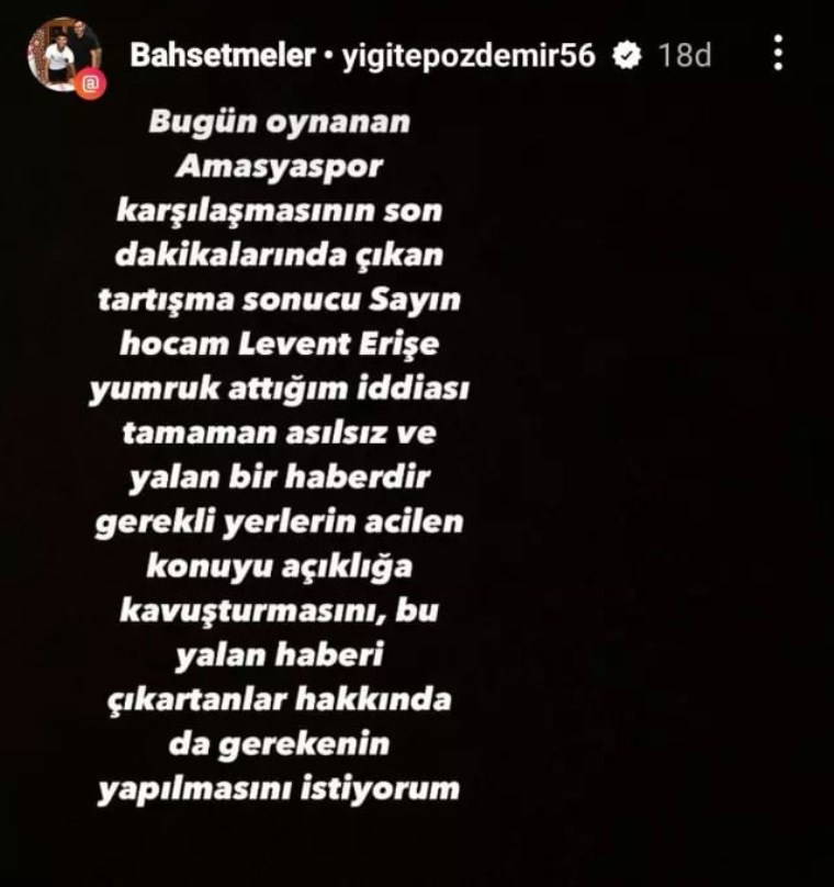 Karşılaşmanın ardından sosyal medya hesabından bir açıklama yapan Yiğit Epözdemir hocasI Levent Eriş’i yumruklamadığını söyledi.