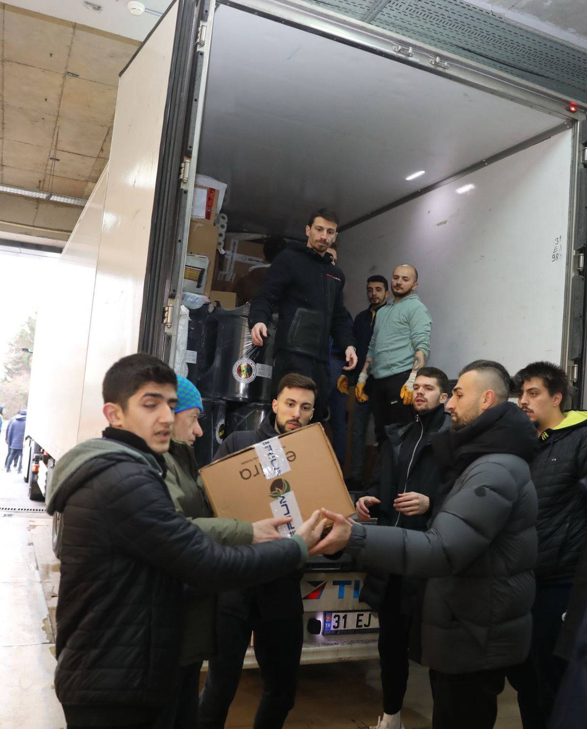 Bugün yapılan organizasyonda, Fenerbahçeli futbolcular Mert Hakan Yandaş, Arda Güler ve Serdar Dursun, toplanan yardım malzemelerinin tırlara doldurulmasına yardımcı oldu.