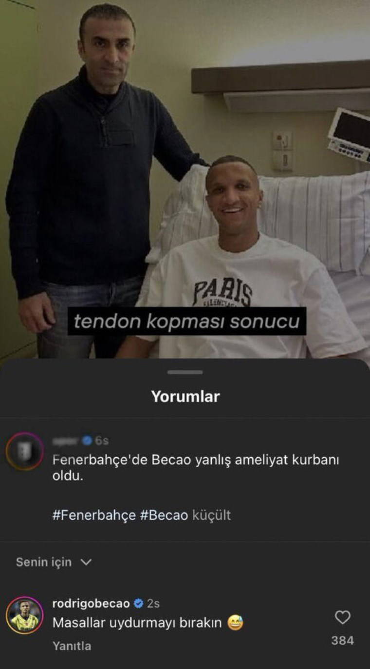Deneyimli oyuncu, sosyal medyada yer alan ''Becao yanlış ameliyatın kurbanı oldu'' başlıklı haberin altına yorum yaparak, ''Masallar uydurmayı bırakın'' ifadelerini kullandı.