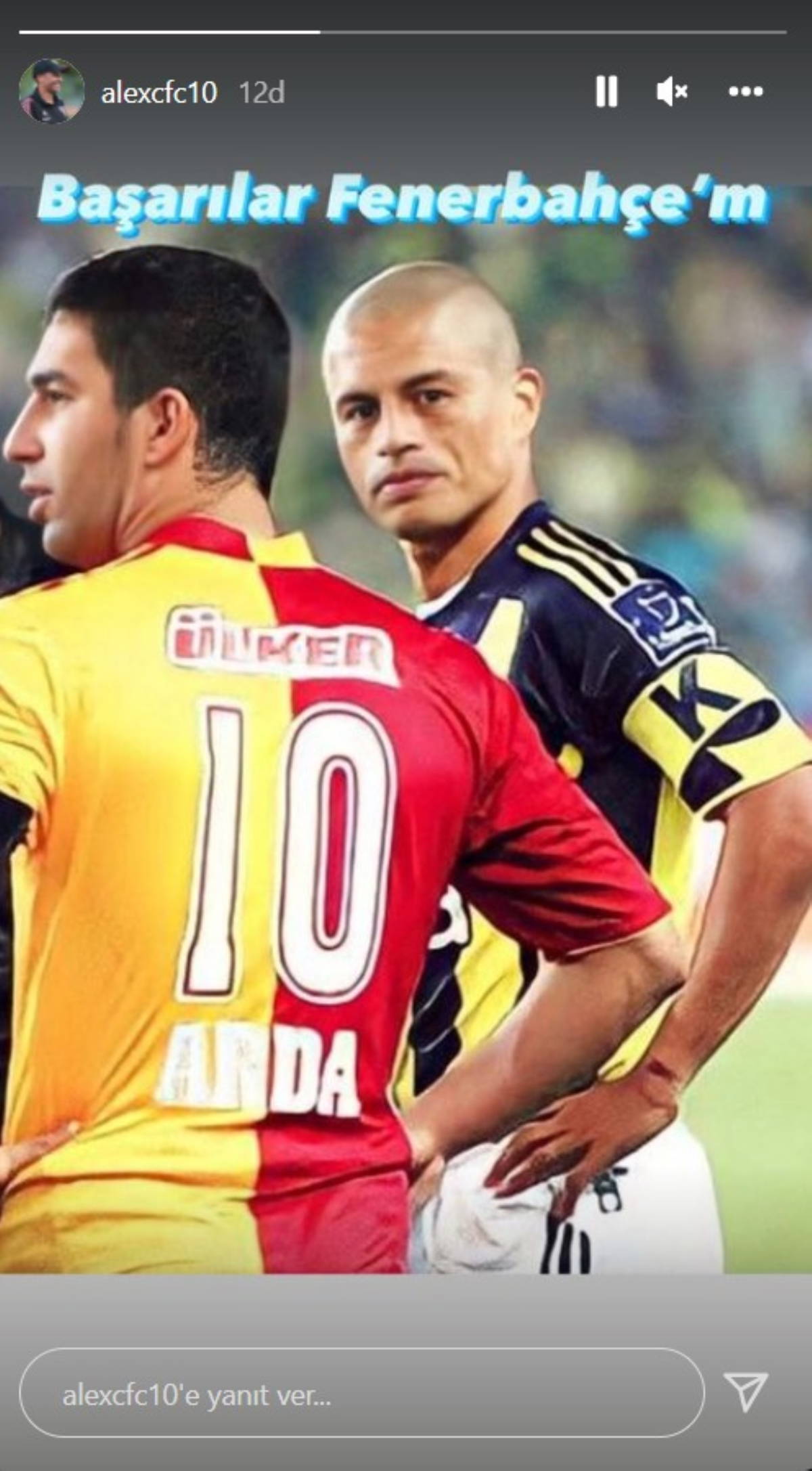 Alex de Souza, Galatasaraylı Arda Turan ile maçtan bir fotoğrafını paylaşarak, "Başarılar Fenerbahçe'm" ifadesini kullandı.