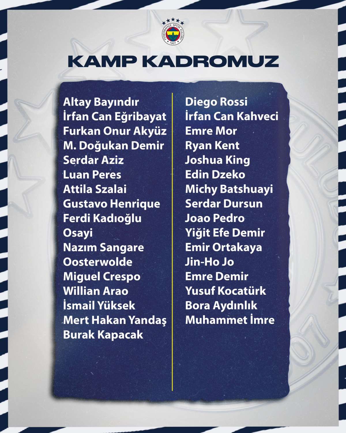 Yeni sezon hazırlıkları kapsamında Rusya'ya gidecek olan Fenerbahçe'nin kamp kadrosu belli oldu.