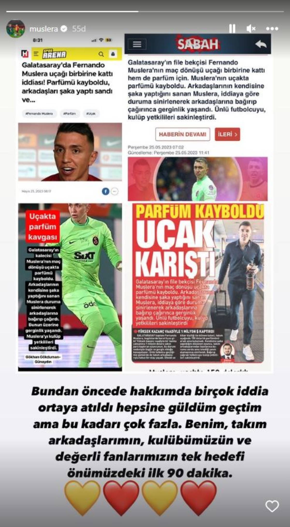 Muslera'nın takım uçağında 150 dolarlık parfümünü aradı ama bulamadığına dair bir haber yapılmış, kendisine şaka yapıldığını düşünen oyuncunun, takım arkadaşlarından bazılarına durumu sordu ama istediği yanıtı alamayınca sinirlendiği öne sürülmüştü.