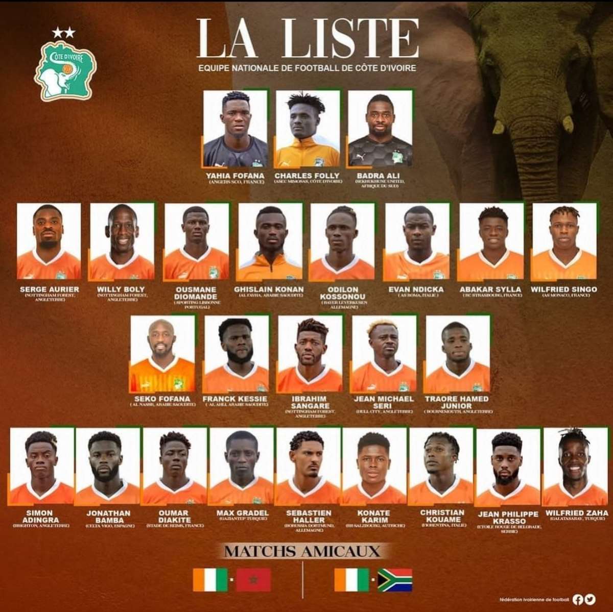 Fildişi Sahili Milli Takımı'nın Güney Afrika ile oynayacağı hazırlık maçının aday kadrosu açıklandı.