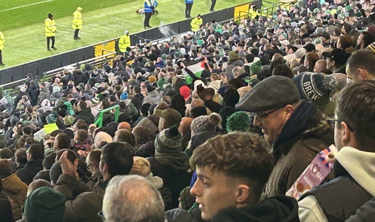 Boş koltukların olduğu tribüne bir Filistin bayrağının asıldığı görüldü. Tribünde bulunan bazı Celtic taraftarları ise çarşamba günü oynanan lig karşılaşmasında da Filistin'e destek vermeye devam etti.