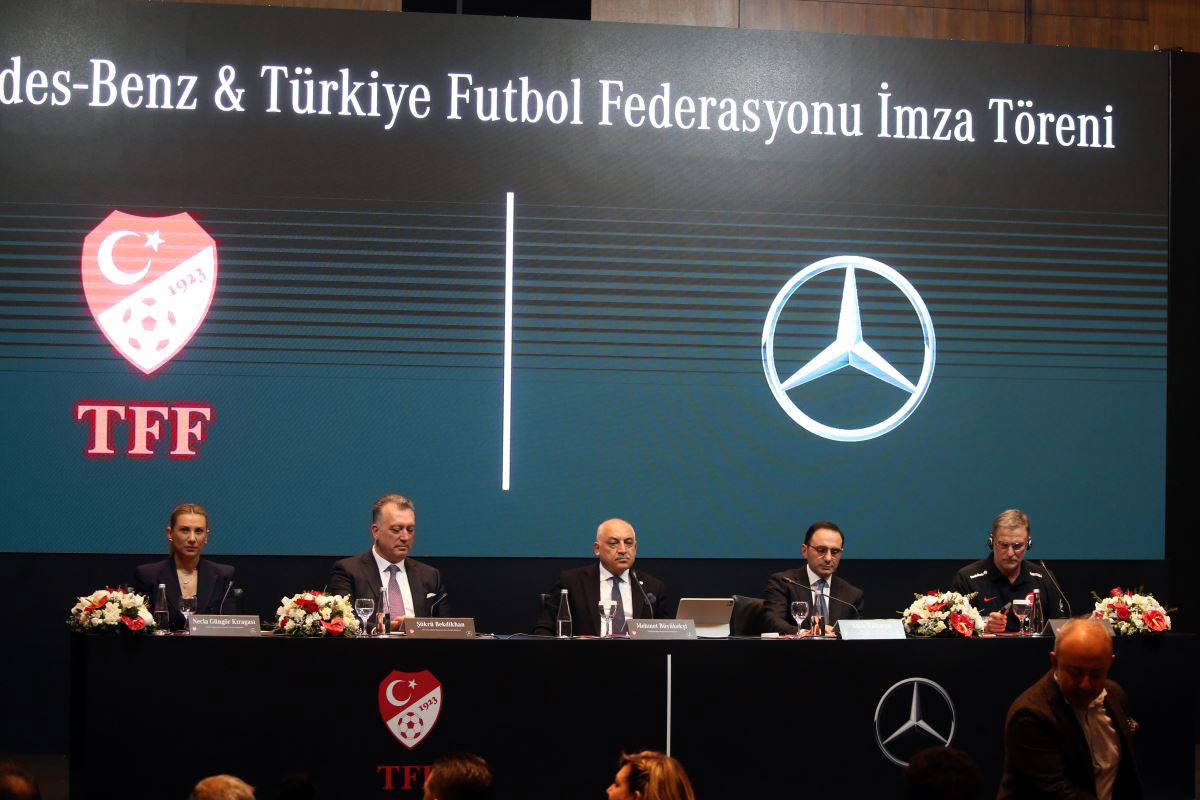 TFF'nin ev sahipliğinde Riva tesislerinde gerçekleşen imza törenine; TFF Başkanı Mehmet Büyükekşi ve Mercedes-Benz Otomotiv İcra Kurulu Başkanı Şükrü Bekdikhan'ın yanı sıra, TFF Başkan Vekili ve İcra Kurulu Üyesi Alkın Kalkavan, A Milli Erkek Futbol Takımı Teknik Direktörü Stefan Kuntz, A Milli Kadın Futbol Takımı Teknik Direktörü Necla Güngör Kıragası katıldı. Yapılan yeni sözleşmeye göre TFF'ye ilk kez tamamen elektrikli 81 otomobillerle destek verilecek.
