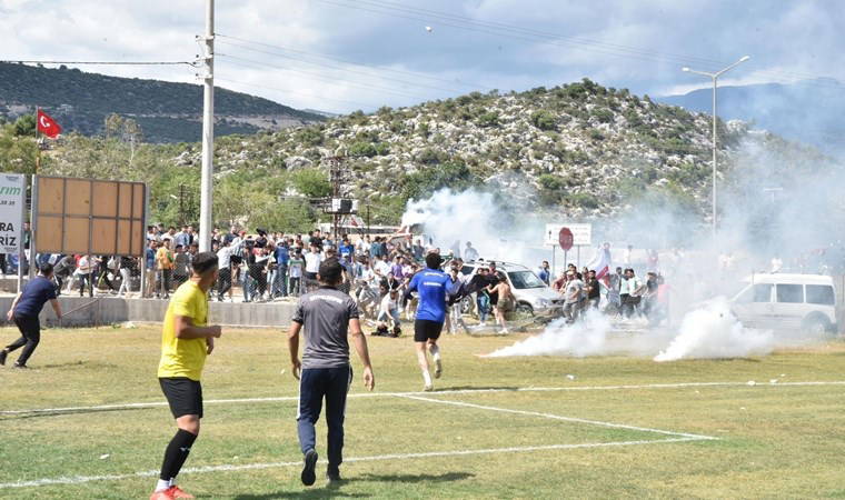 Kolluk kuvvetleri, iki ilçenin belediye ve kulüp başkanlarının da araya girmesiyle olaylar yatıştırılırken, maç ise ertelendi.