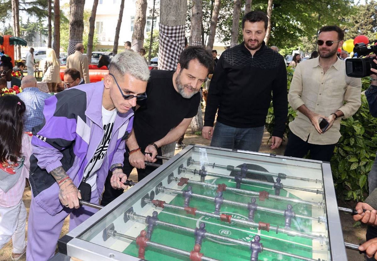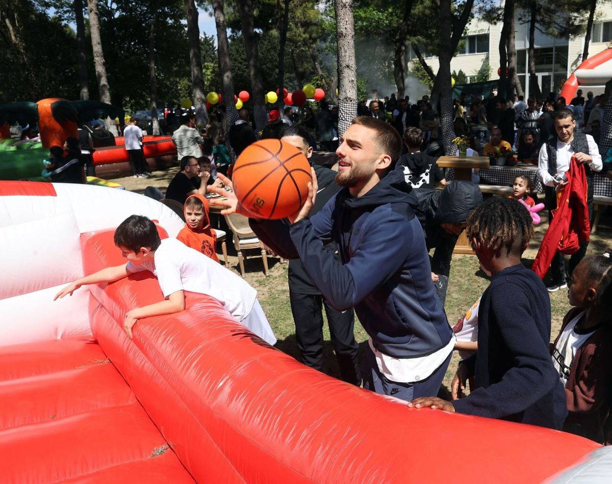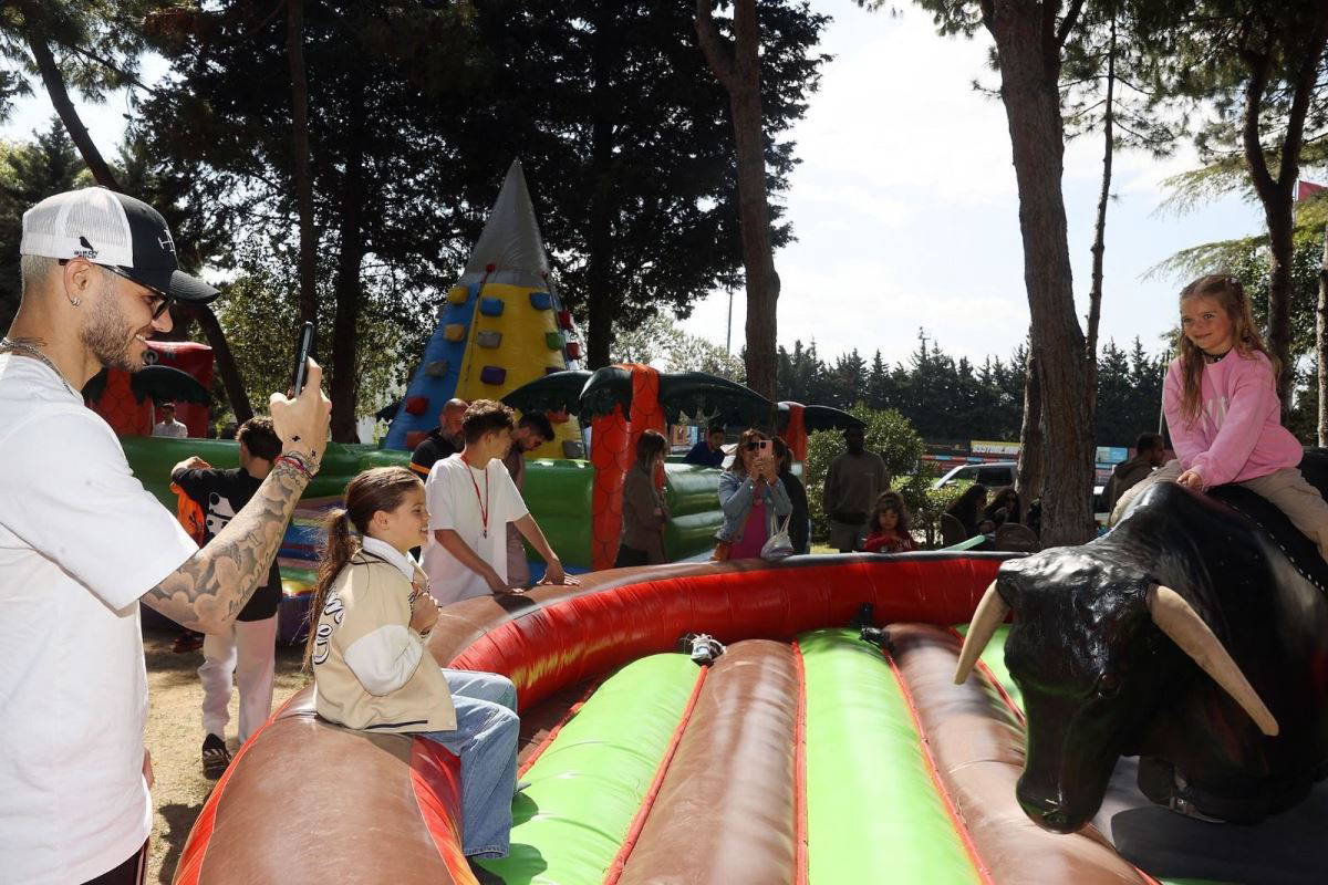 Kurulan oyun alanlarında çocuklarla eğlenen futbolcular, keyifli bir gün yaşadı.