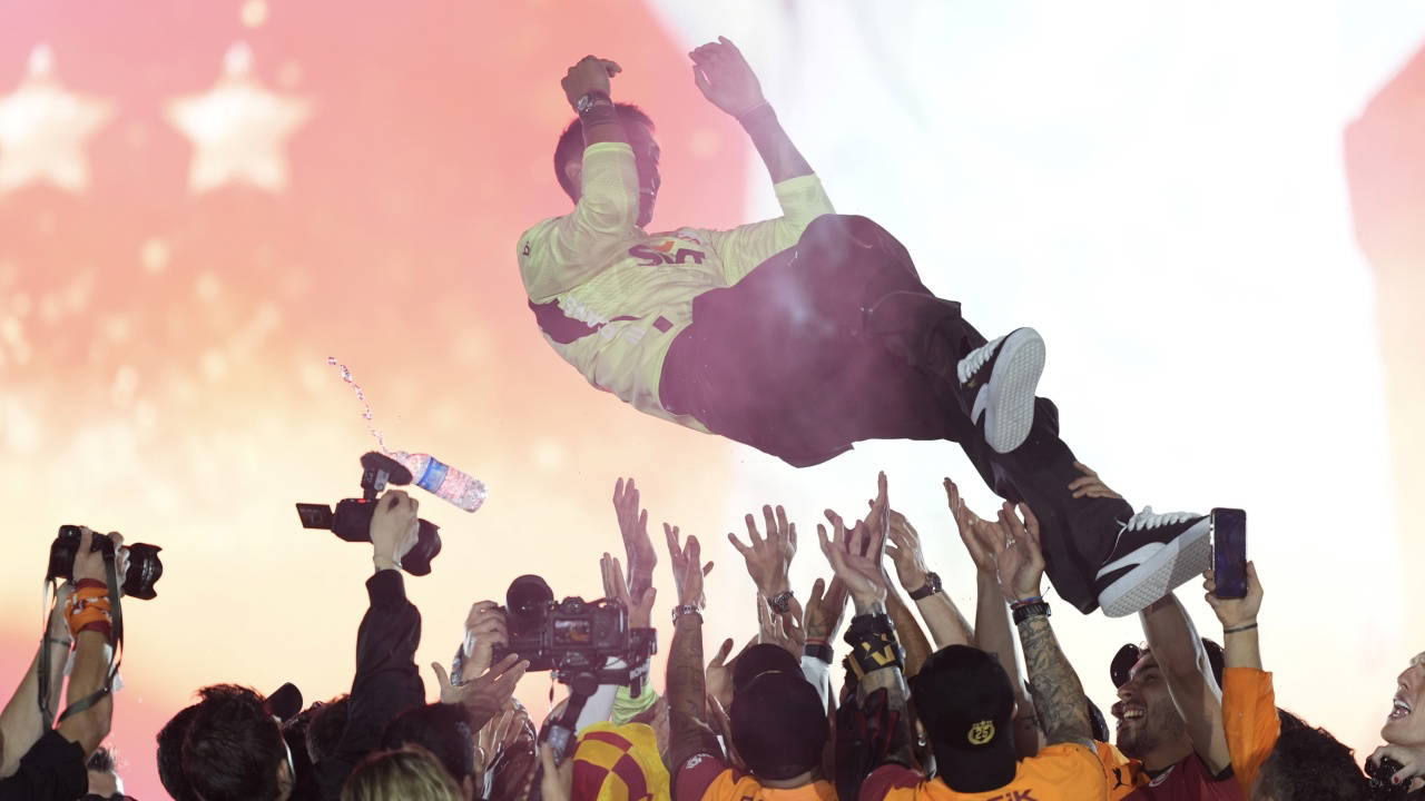 Muslera, kutlamalar için sahaya, "Çok üzgünüz, onu çok özleyeceğiz" sözleri ile anons edildi. Deneyimli eldiven, kutlamalar sırasında kendi kurtarışlarını izlerken gözyaşlarına hakim olamadı.