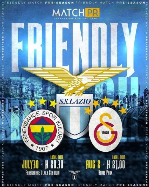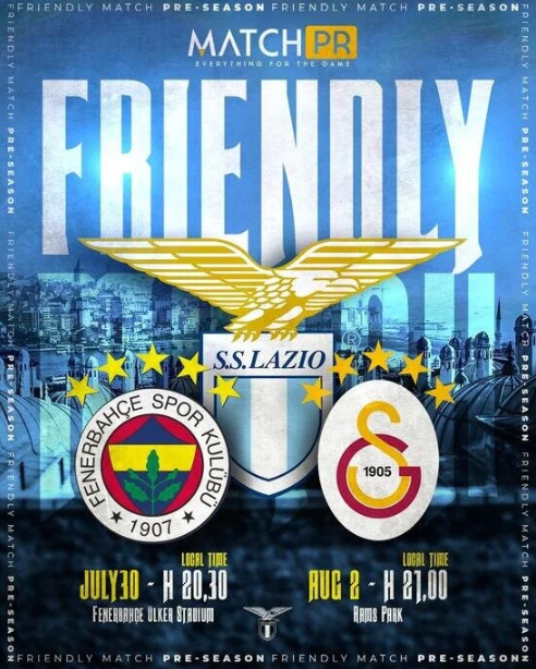 Lazio, hazırlık maçlarında önce 30 Temmuz'da Fenerbahçe ile karşılaşacak ardından 2 Ağustos'ta Galatasaray ile karşı karşıya gelecek.