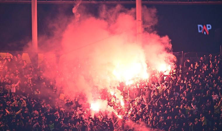 RAMS Park'ta oynanan maçta kendilerine ayrılan deplasman tribününü dolduran Fenerbahçe taraftarları ikinci yarıda yaktıkları meşaleleri sarı kırmızılı tribünlere fırlattı.