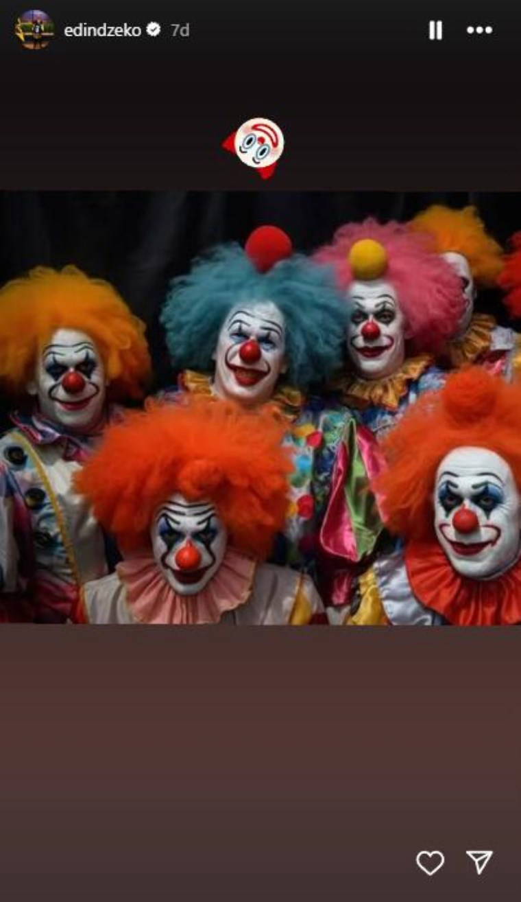 Dzeko, sosyal medya hesabından palyaço paylaşımı yaptı. Bu paylaşım, Galatasaray maçındaki hakem kararlarına gönderme olarak algılandı.