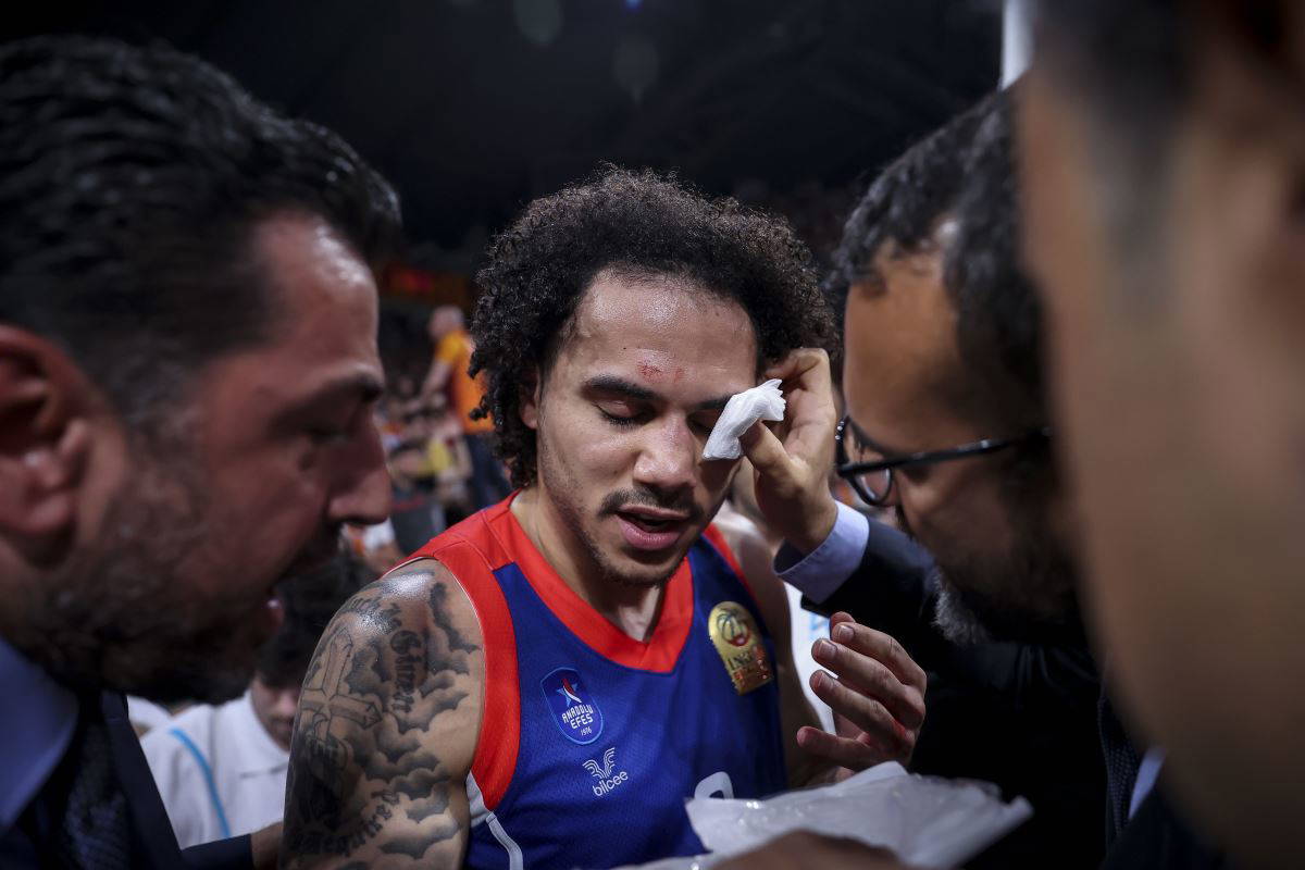 Galatasaray Nef - Anadolu Efes maçının ilk yarısında Shane Larkin herkesi korkuttu. Pota altında yaşanan bir pozisyon sonrası sakatlık geçiren Larkin yüzünü tutarak sağlık görevlilerini bekledi. Takım arkadaşları da destek için yanında bulundu. Yüzü kanlar içinde kalan oyuncuya ilk tedavi parke kenarında yapıldı. Detaylı muayene için içeri götürülen Shane Larkin'in sol kaşına 7 dikiş atıldı.