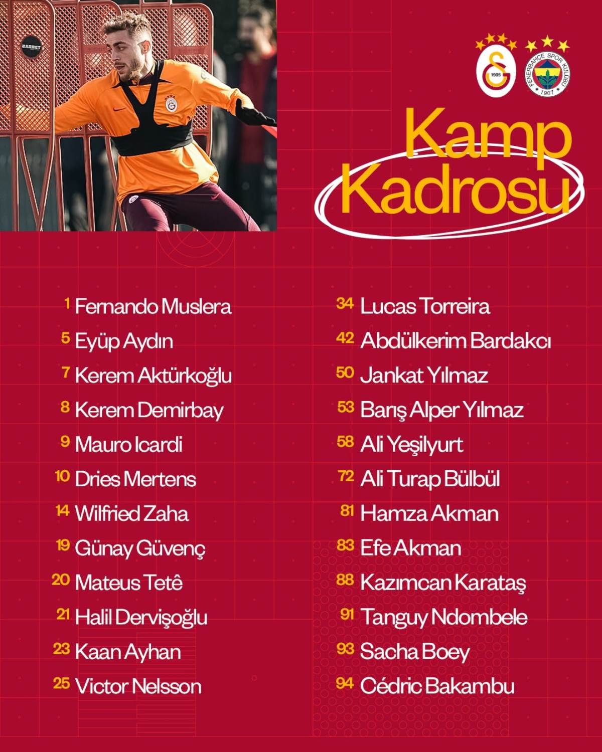 Galatasaray'ın, Fenerbahçe ile oynayacakları maçın kamp kadrosunu belli oldu.