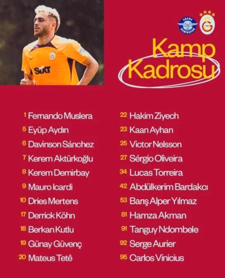 Galatasaray, Adana Demirspor maçı kamp kadrosunu açıkladı.