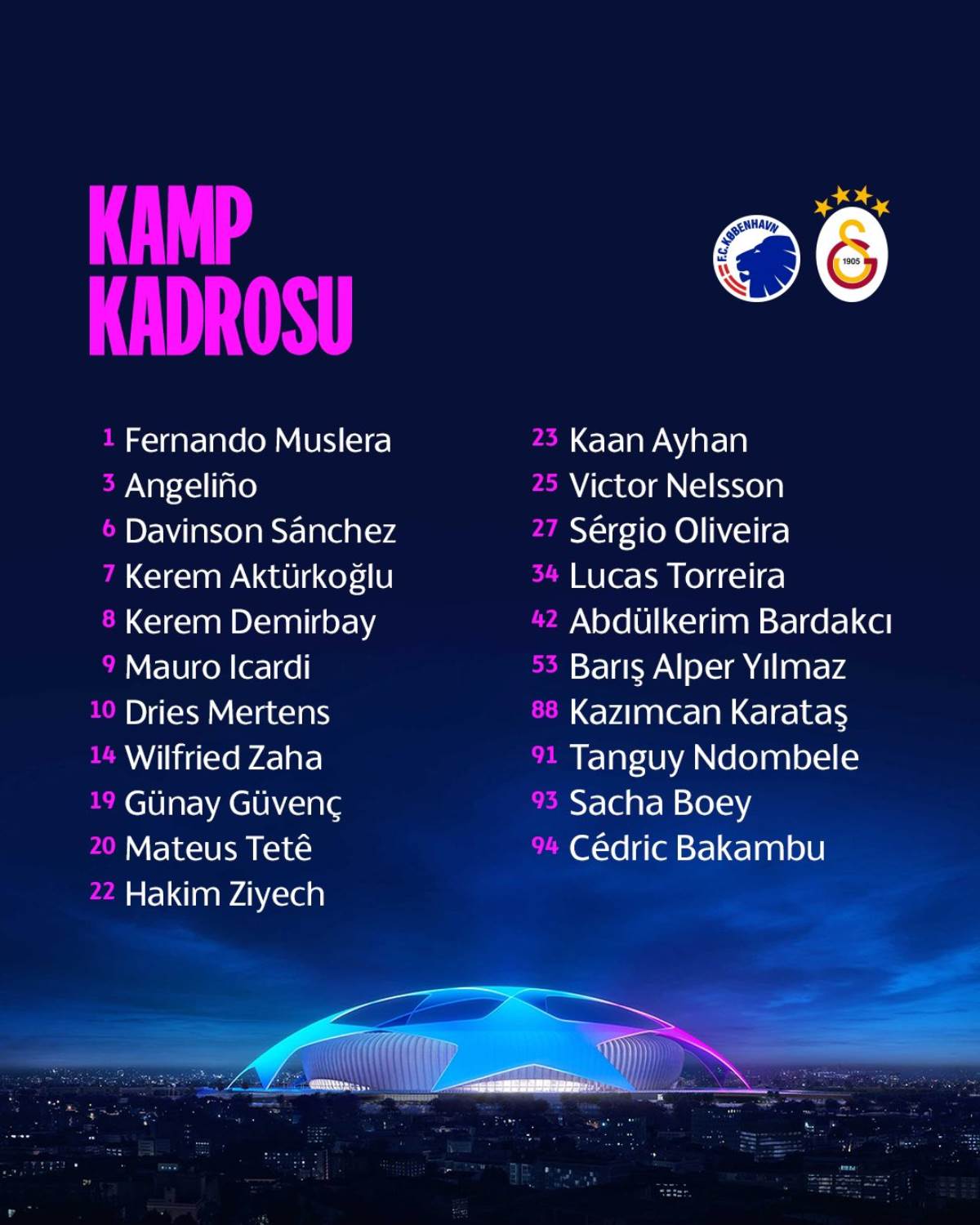 Şampiyonlar Ligi'nde Kopenhag ile kritik bir maça çıkacak Galatasaray'da kamp kadrosu belli oldu.